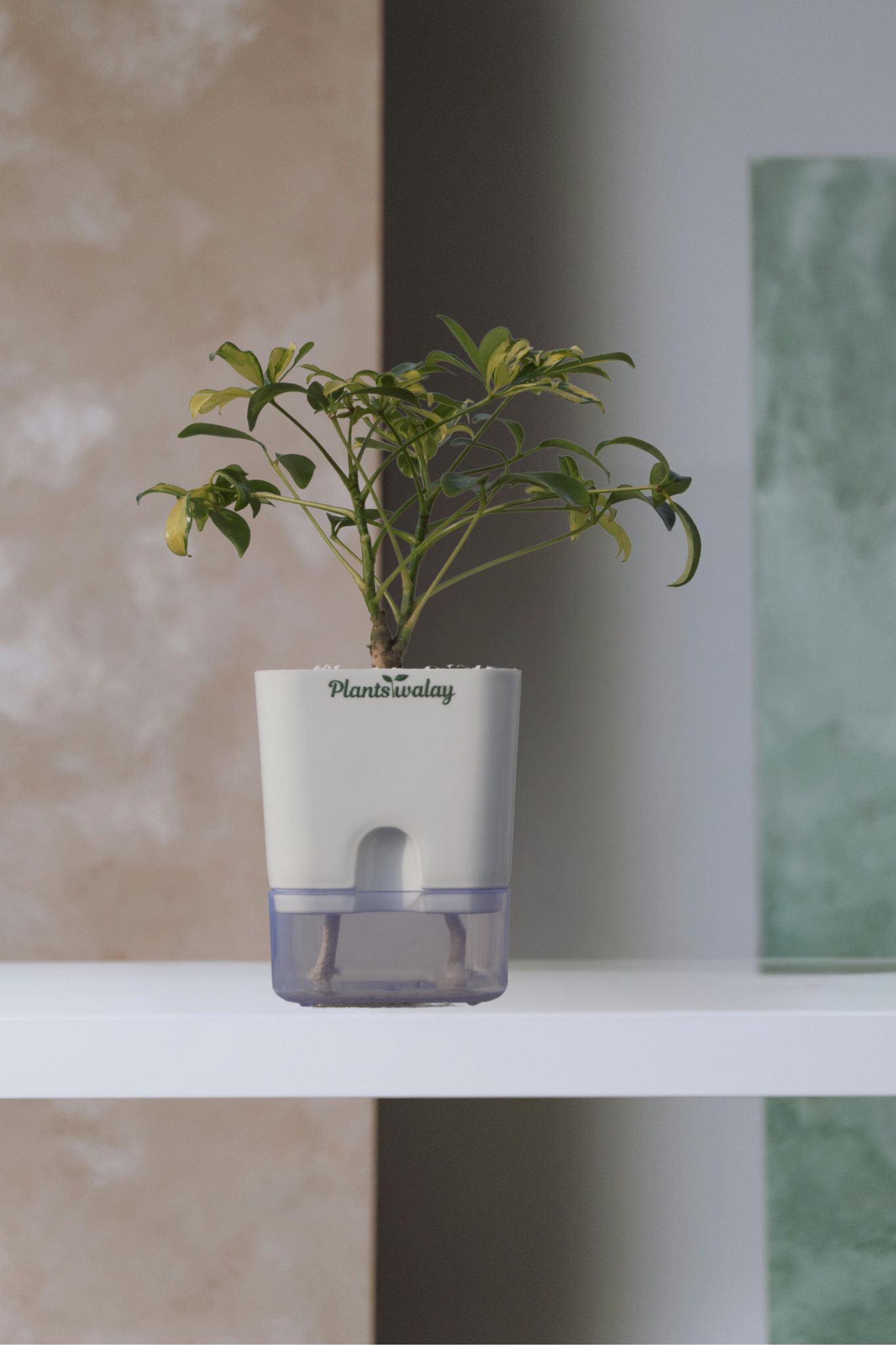 Enhance your indoor space with the Schefflera Plant, also known as the Umbrella Plant, famous for its lush, glossy green leaves that spread out like an umbrella. Paired with a smart self-watering pot, this elegant plant thrives effortlessly, making it a perfect addition to homes and offices.